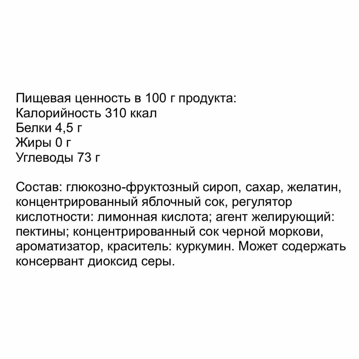 | Состав | желатин, сахар, глюкозно-фруктозный сироп |