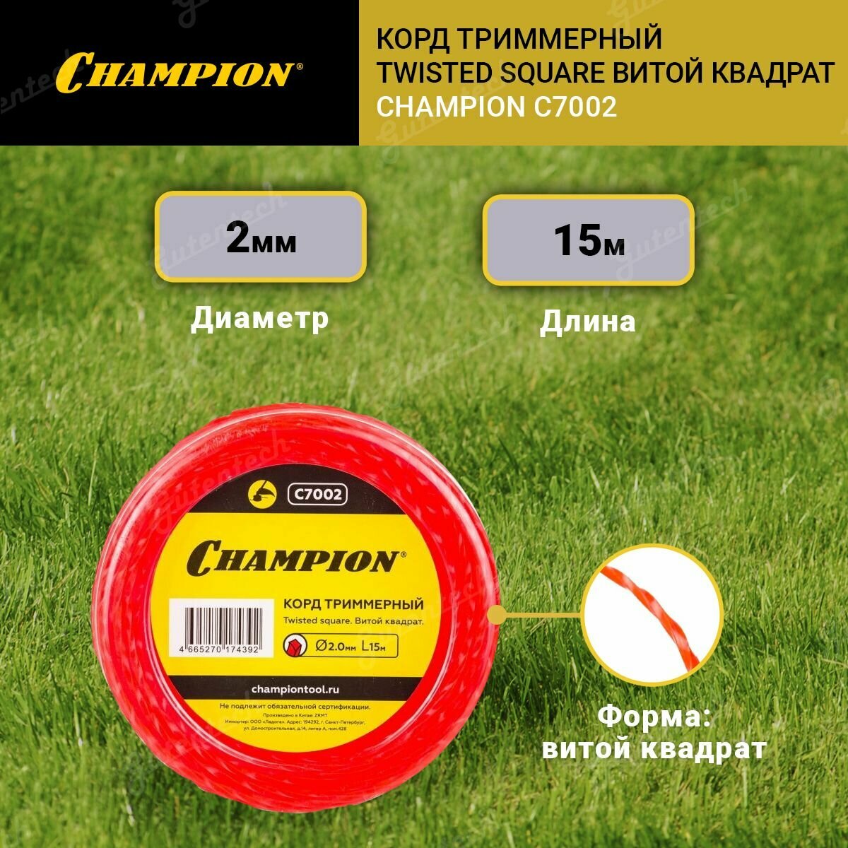 Леска триммерная CHAMPION Twisted Square 2.0-15 м (витой квадрат)