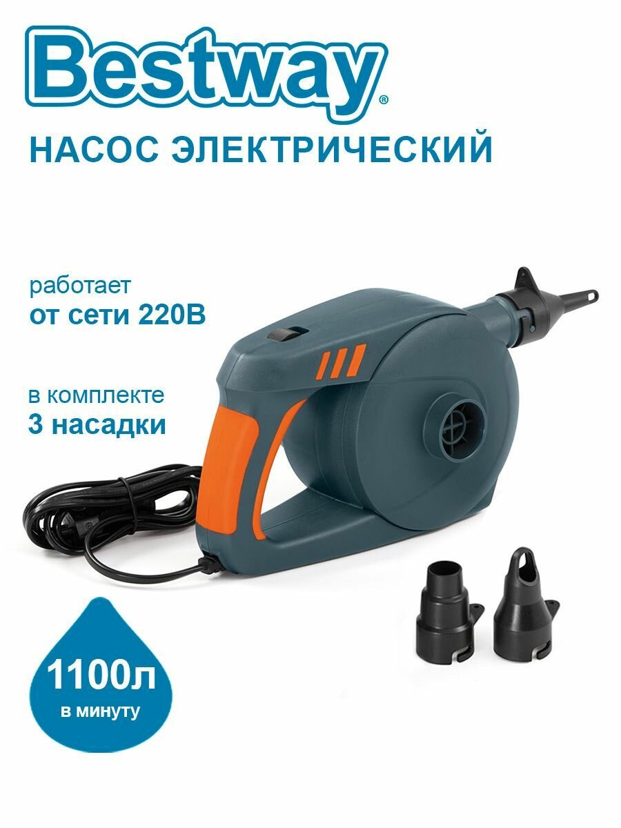 Насос электрический 220-240В AC, 3 адаптера, Bestway, арт. 62145