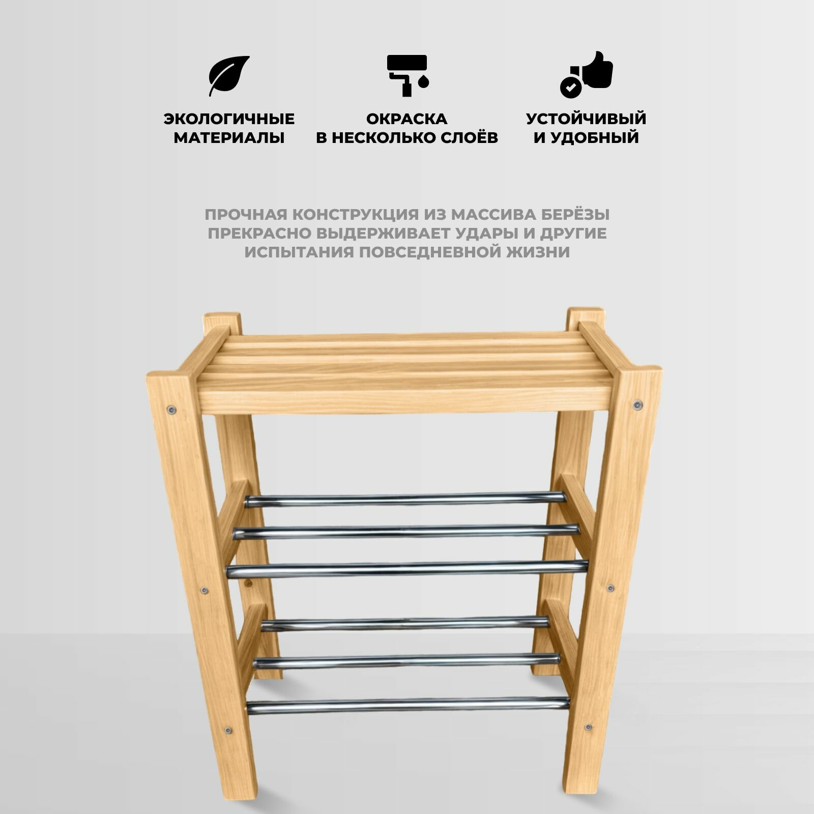 Обувница, деревянная полка органайзер этажерка для обуви с сидением и стеллажем без покрытия