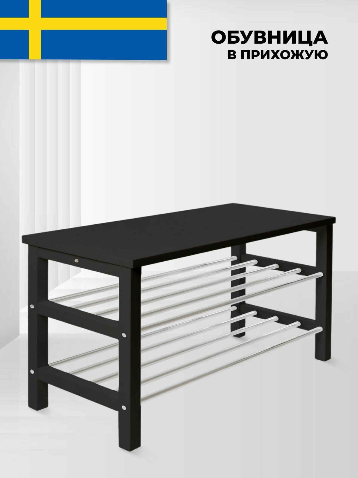 Купить Обувница деревянная органайзер этажерка для обуви 108х34х50см, заменитель Чусиг икеа черная
