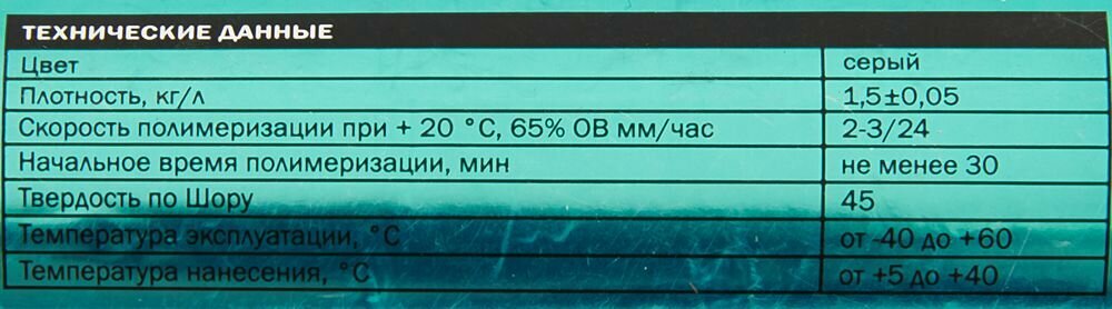 | Дополнительная информация | время затвердевания при +23°С и 65% относительной влажности: 3 мм/сут |