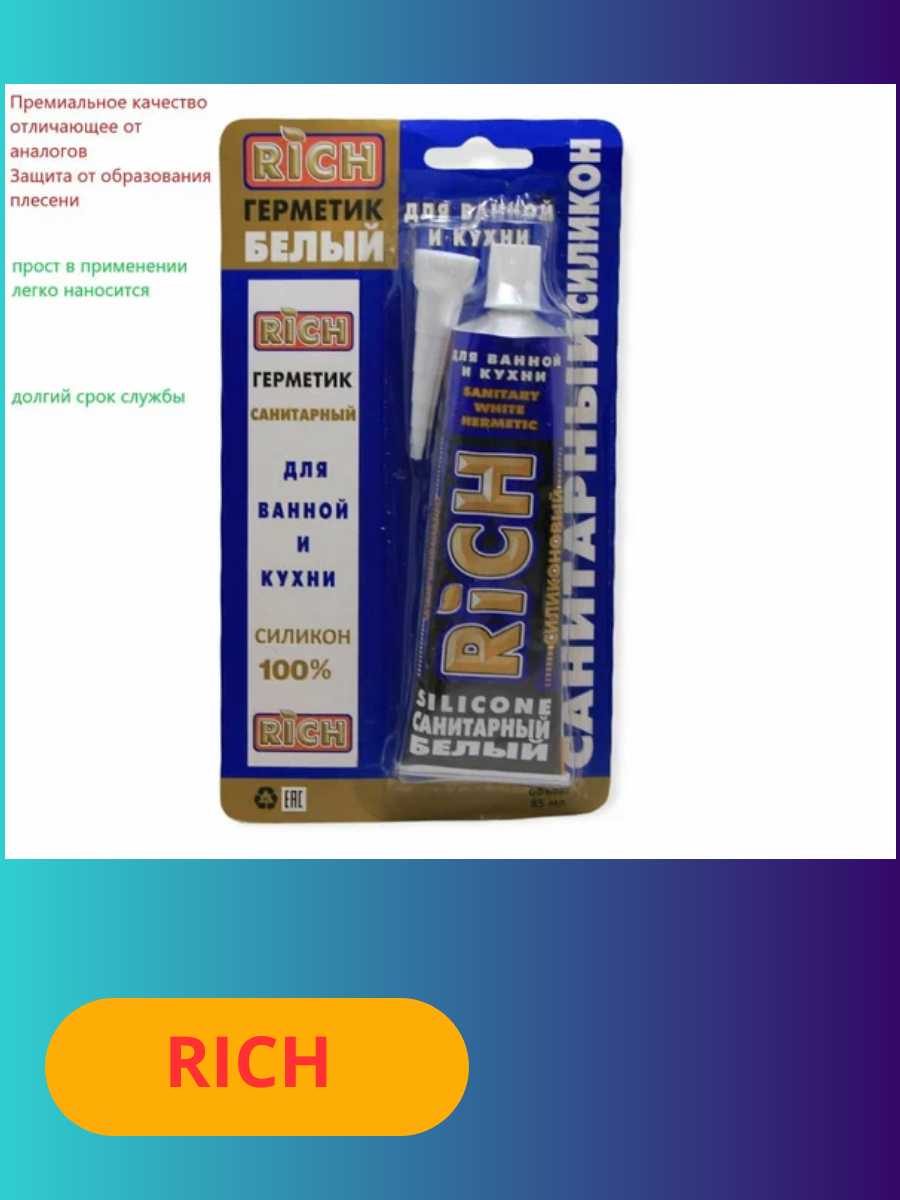 Ниже Вы можете прочитать отзывы на Герметик RICH санитарный силиконовый белый 85 мл, для ванной и кухни, ознакомится с подробными характеристиками, посмотреть интересные обзоры и фотографии на Герметик RICH санитарный силиконовый белый 85 мл, для ванной и кухни.