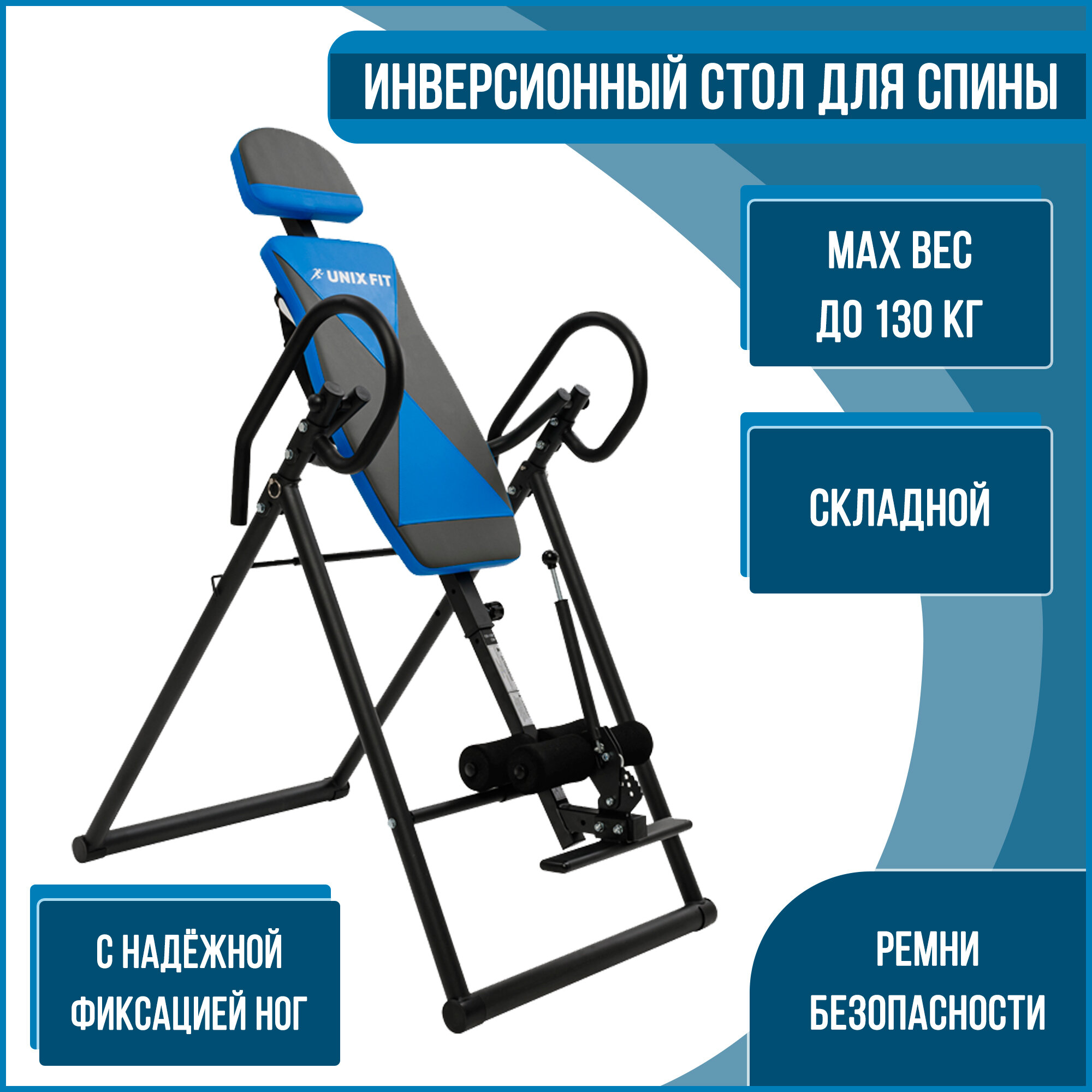 Инверсионный стол UNIX Fit IV-120 складной, для дома, вес пользователя до 130 кг, рост 131-200 см, макс. угол наклона 180 градусов UNIXFIT интересное:
