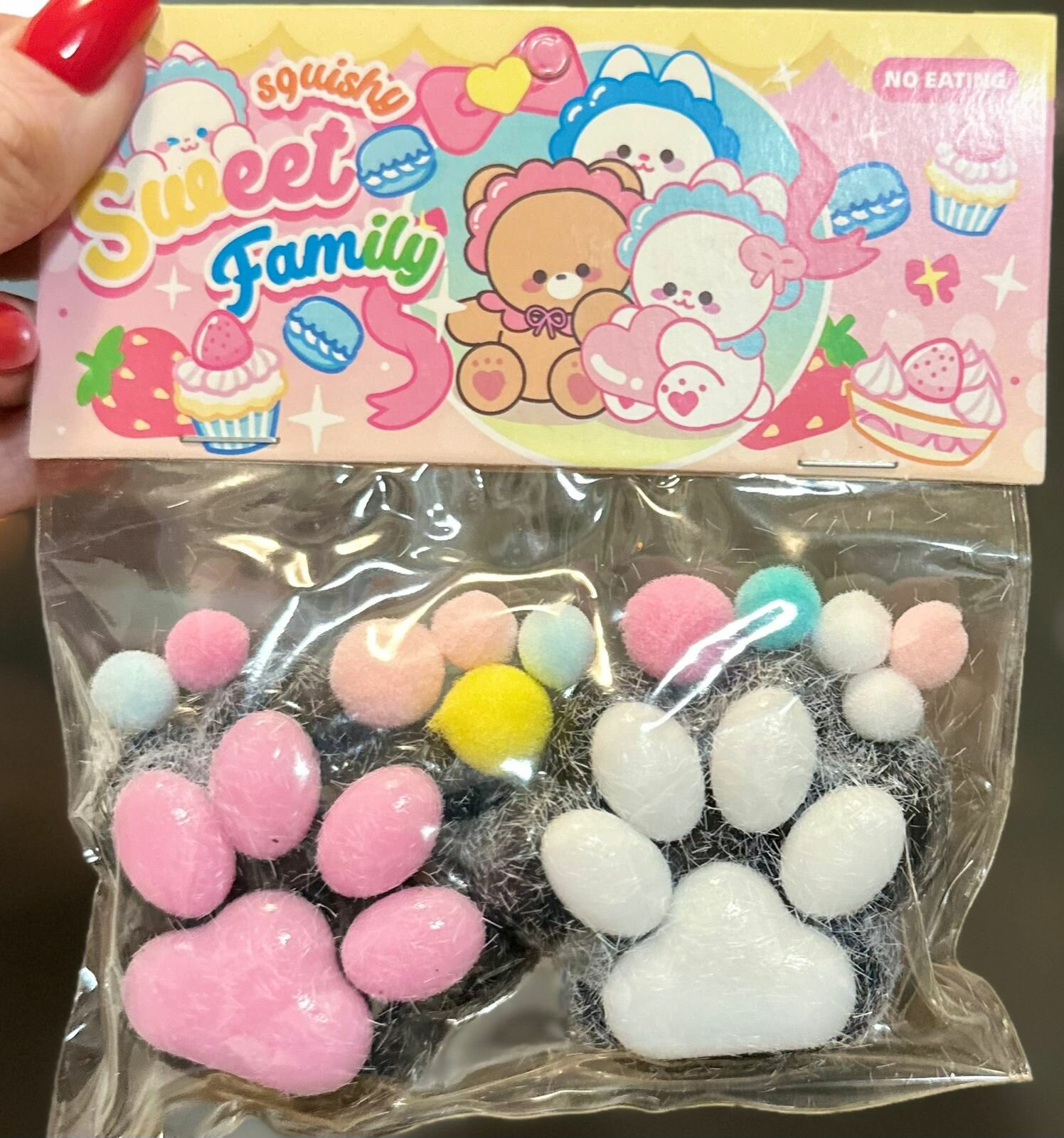 Игрушка-антистресс сквиш "Лапки кошечки", черно-розовый гладкий