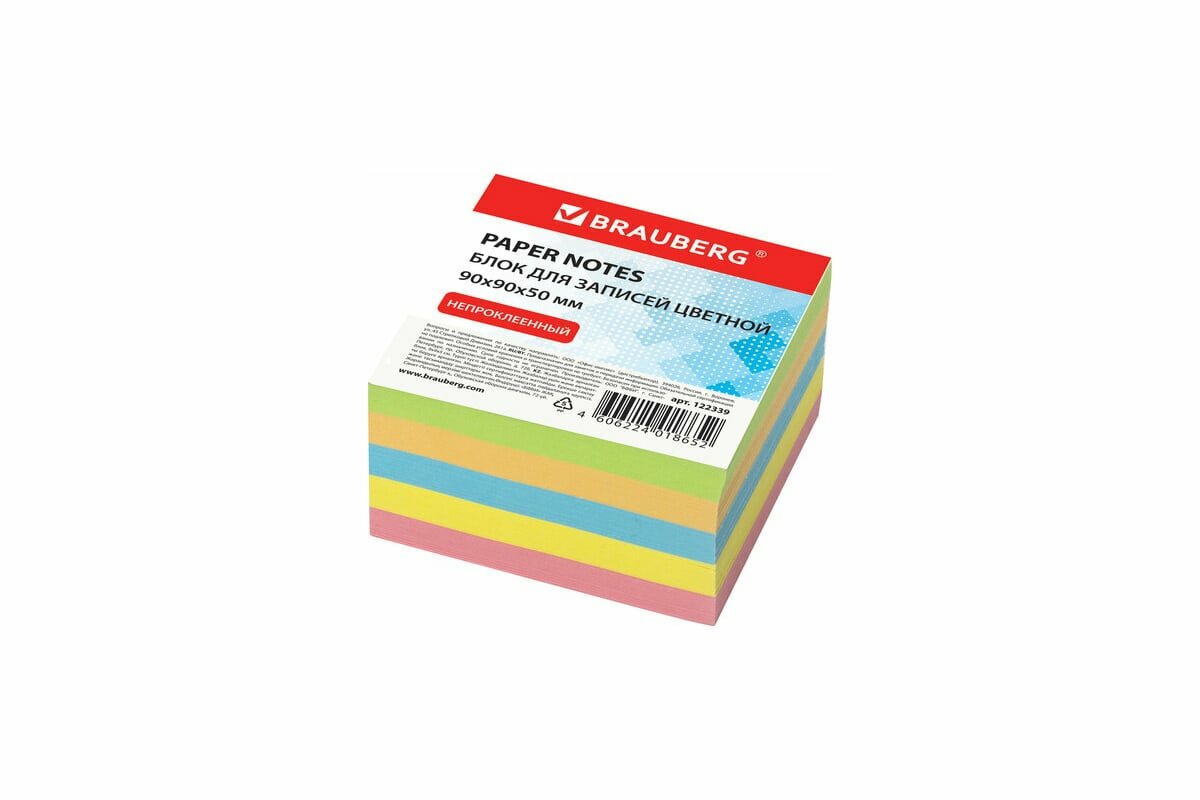 Блок-кубик для записей Brauberg, 90x90x50мм, непроклеенный, цветной (122339)