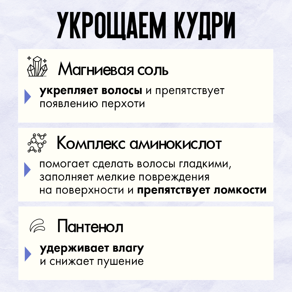 | Тип волос | вьющиеся / для всех типов / непослушные |