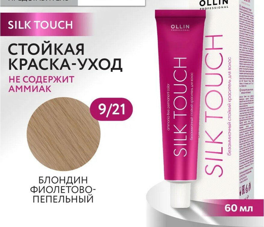 9,21 Краска безаммиачная блондин фиолетово-пепельный Silk Touch Ollin Professional 60 мл