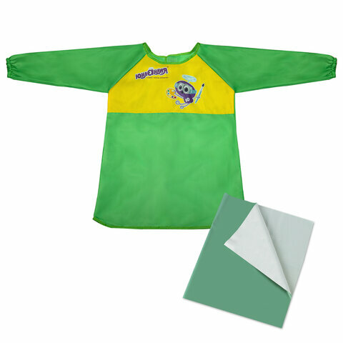 Набор для уроков труда юнландия, клеенка ПВХ 40x69 см, фартук-накидка с рукавами, зеленый, 228357 (цена за 1 ед.товара)