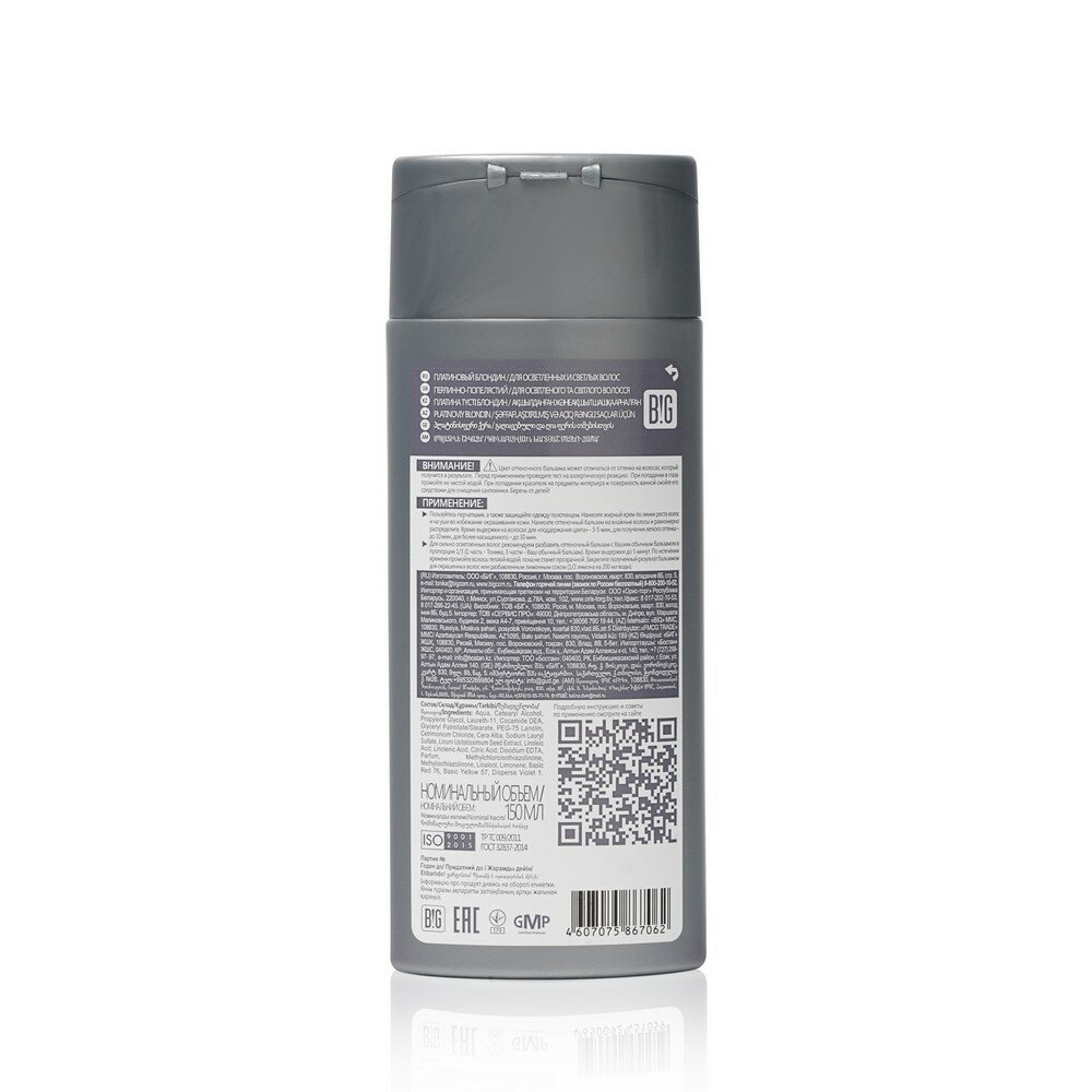 Тоника 9.1. Оттеночный бальзам платиновый блондин ,150мл для блонда и светлых