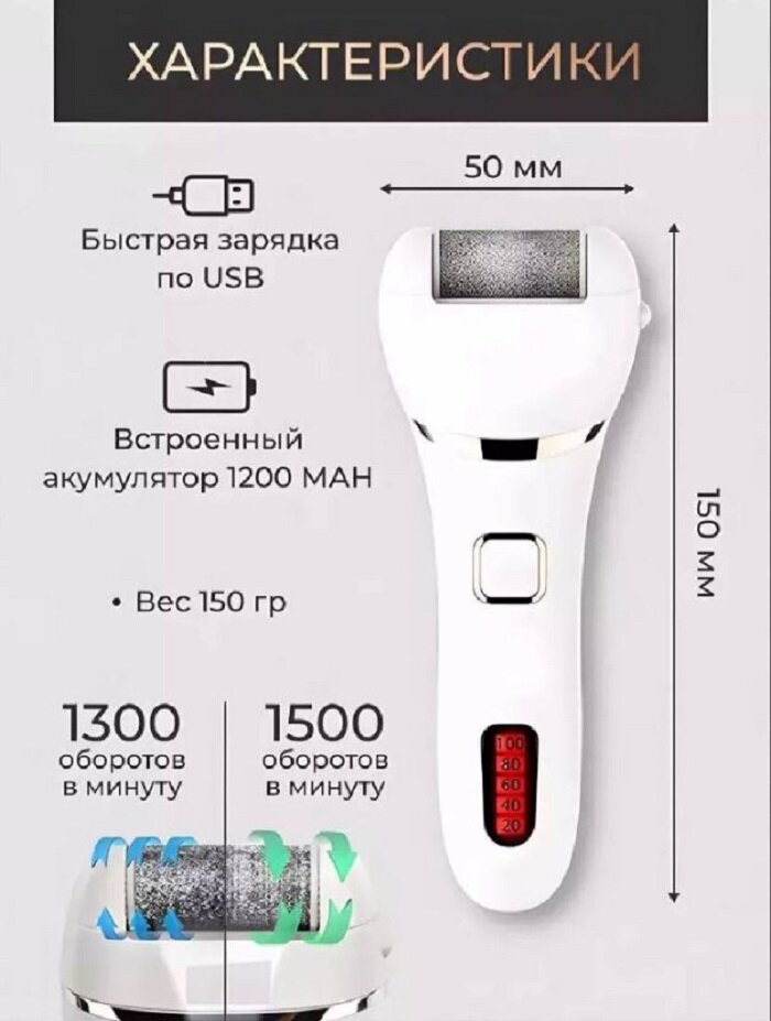 | Тип | электрическая роликовая пилка для маникюра и педикюра |