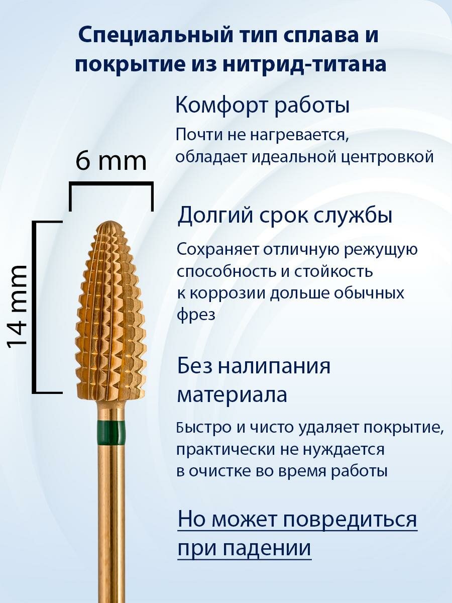 DIAMANIQ Фреза для маникюра и педикюра твердосплавная титановая реверсивная 523 275 216 060R C Грубая зеленая кукуруза d-6.0