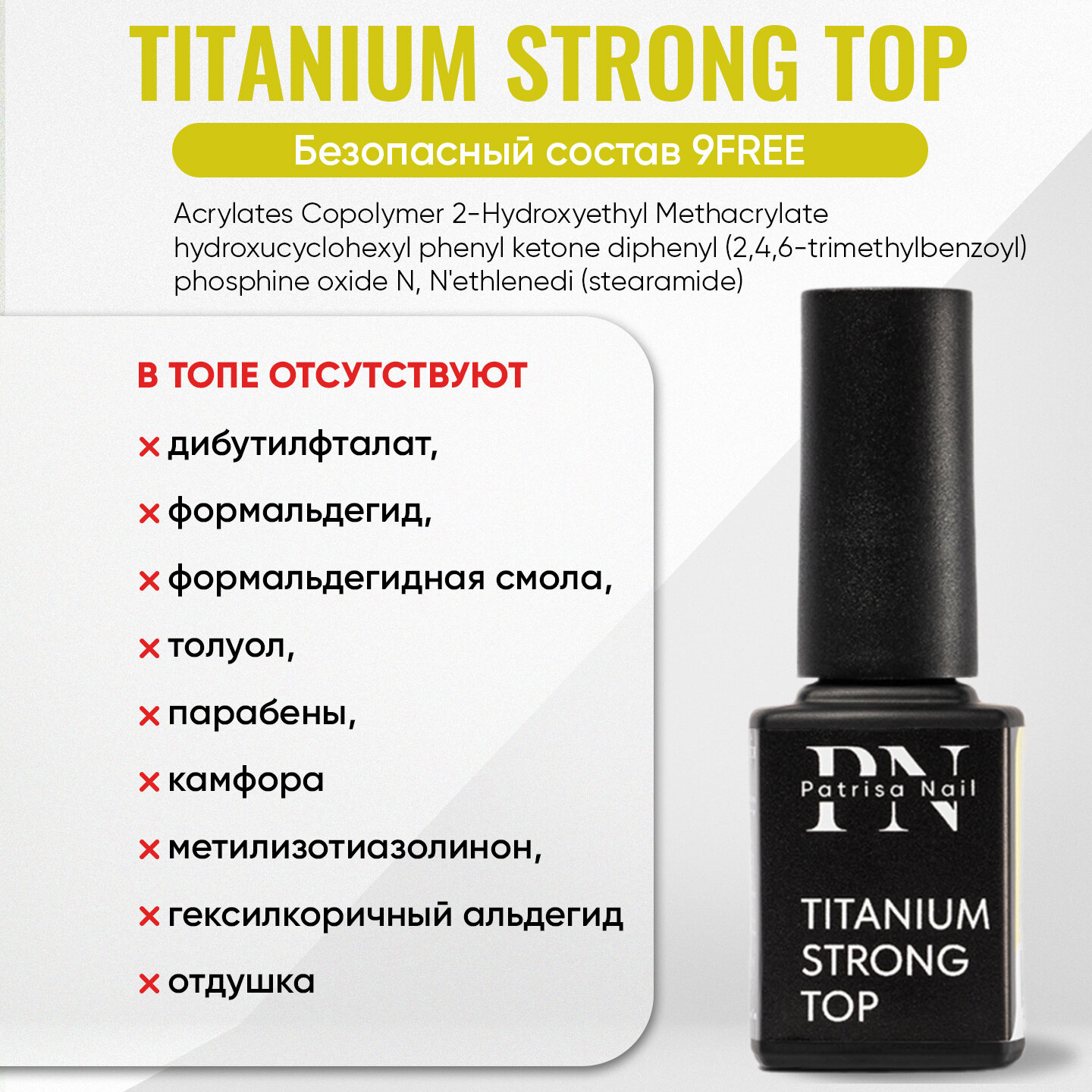 Купить Укрепляющий топ для ногтей Patrisa Nail Titanium Strong Top, без липкого слоя, 12 мл