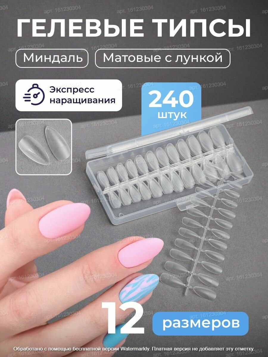 Гелевые типсы для наращивания ногтей матовые "Миндаль", 240шт интересное: