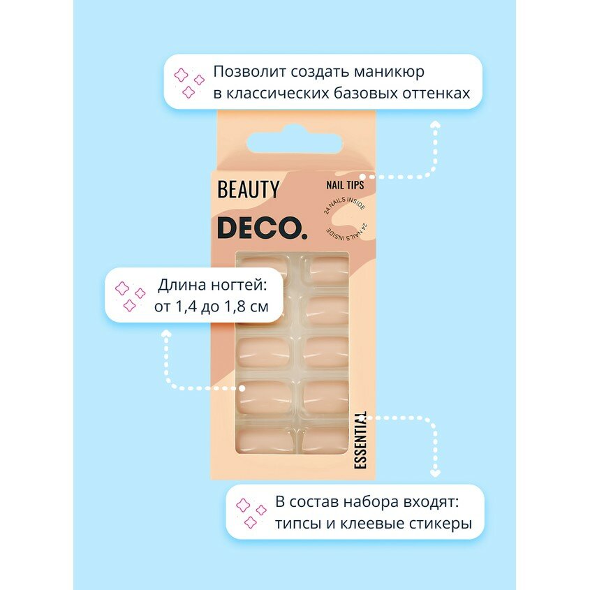 Купить Набор накладных ногтей с клеевыми стикерами DECO. ESSENTIAL creme (24 шт + клеевые стикеры 24 шт)