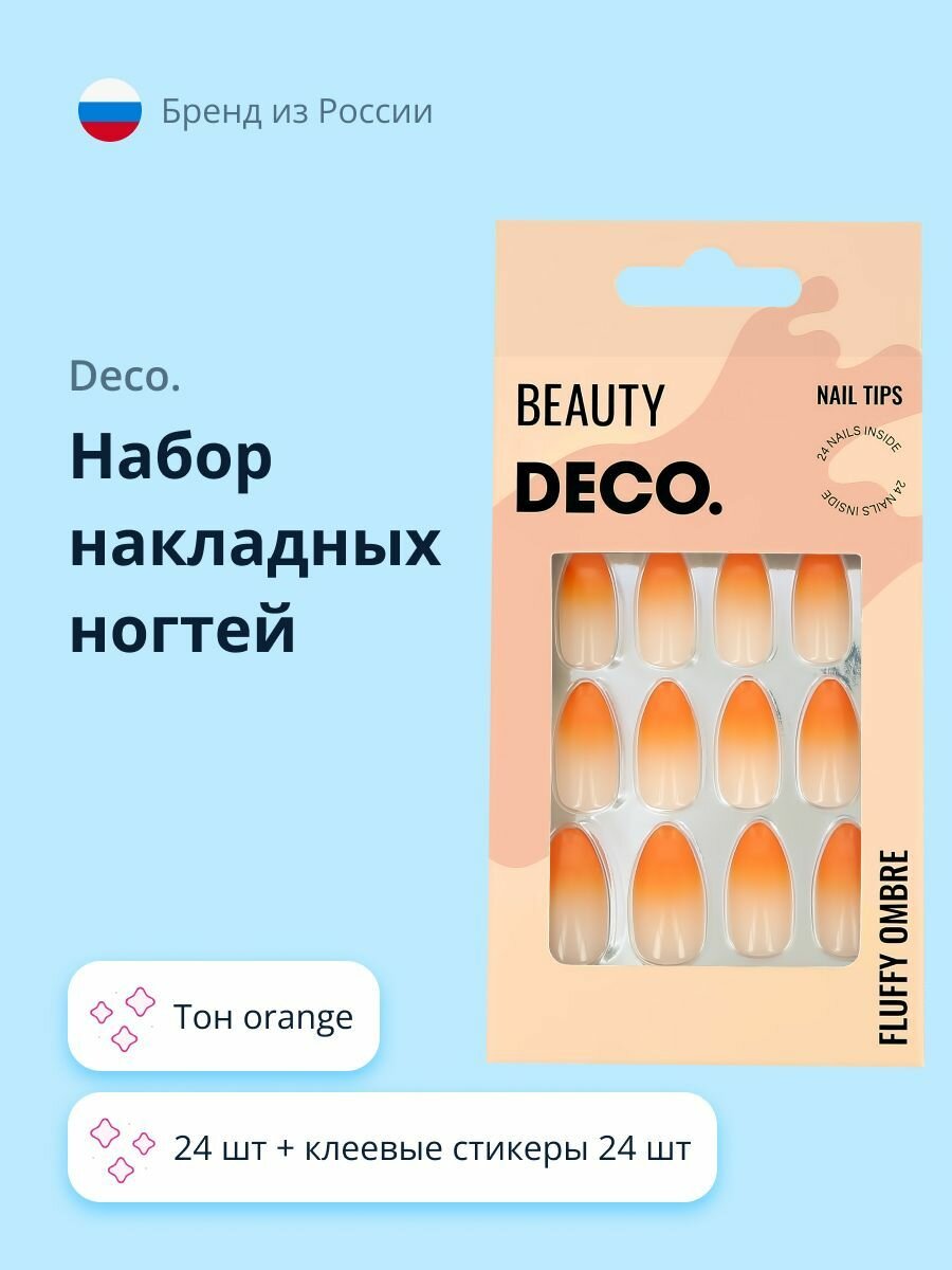 Купить DECO. Набор накладных ногтей FLUFFY OMBRE, orange, 24 шт, клеевые стикеры 24 шт