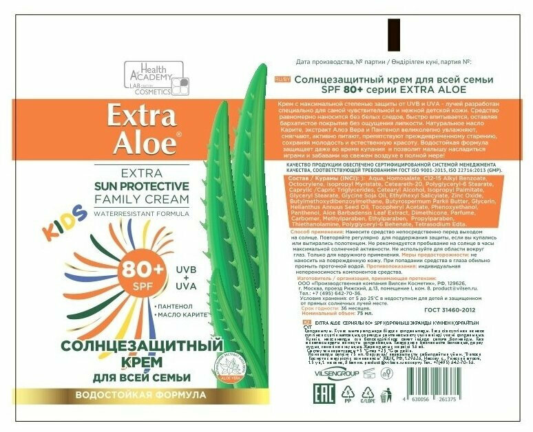 Exra Aloe Солнцезащитный крем для детей SPF 80+ с пантенолом и маслом карите, 75 мл интересное: