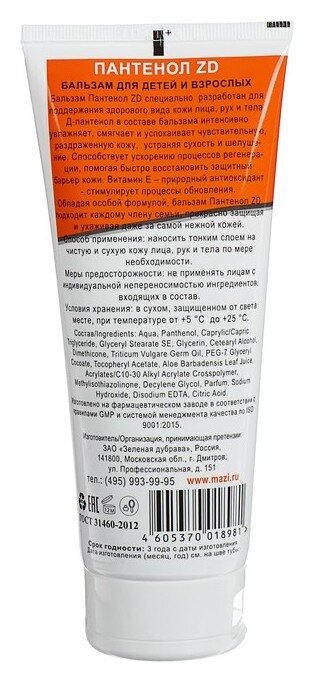 Пантенол ZD бальзам для детей и взрослых туба 200 мл 1 шт интересное:
