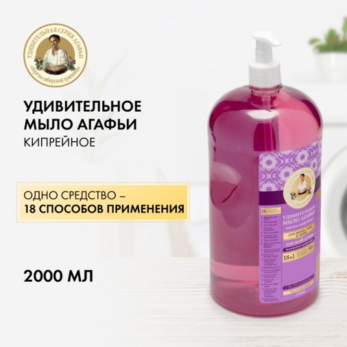 Жидкое мыло для дома 18 в 1 Рецепты бабушки Агафьи Удивительная серия "Кипрейное" для мытья посуды, рук и тела 2000 мл интересное: