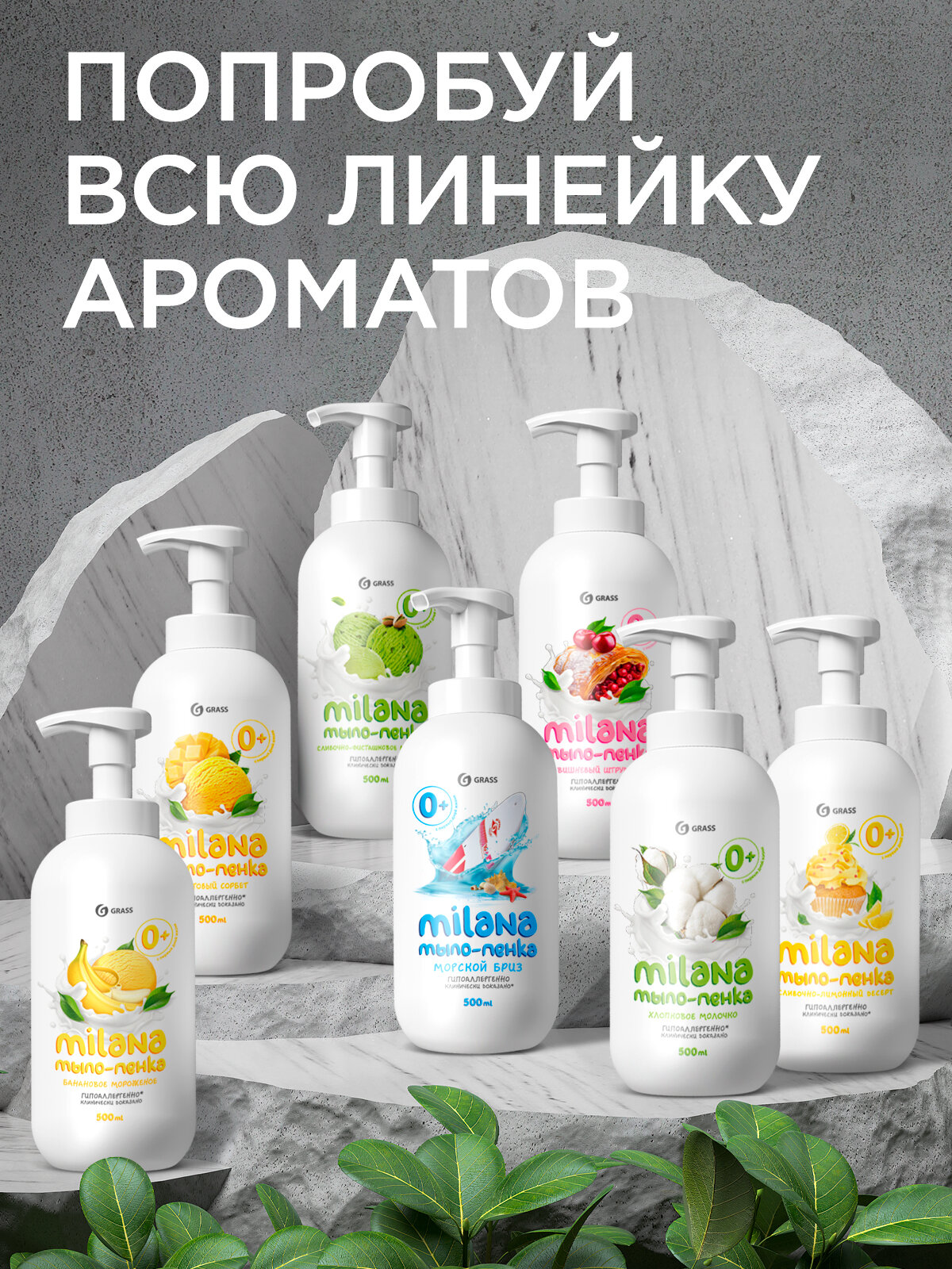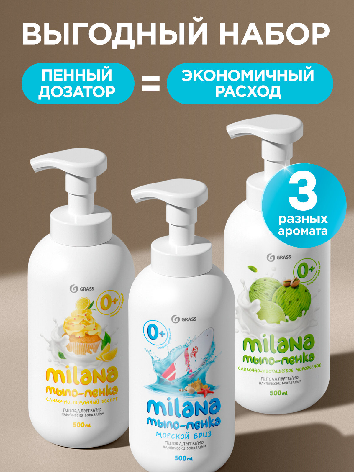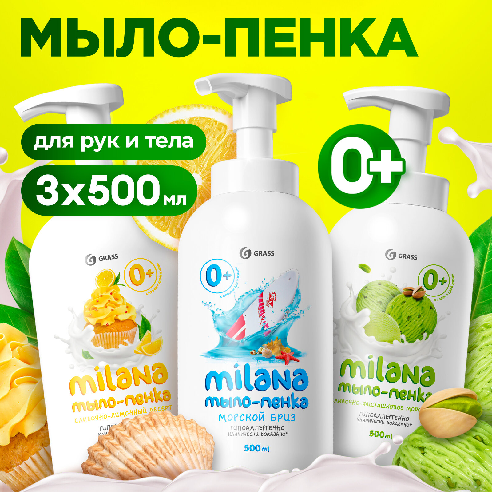 Жидкое мыло пенка Grass Milana с дозатором, по 500мл набор из 3шт интересное: