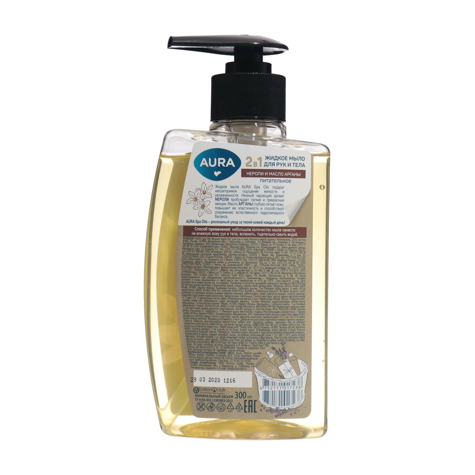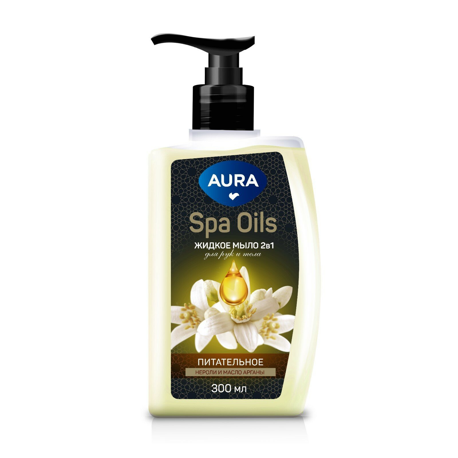 Aura spa oils жидкое мыло 2 в1 для рук и тела нероли и масло арганы флакон дозатор 300мл
