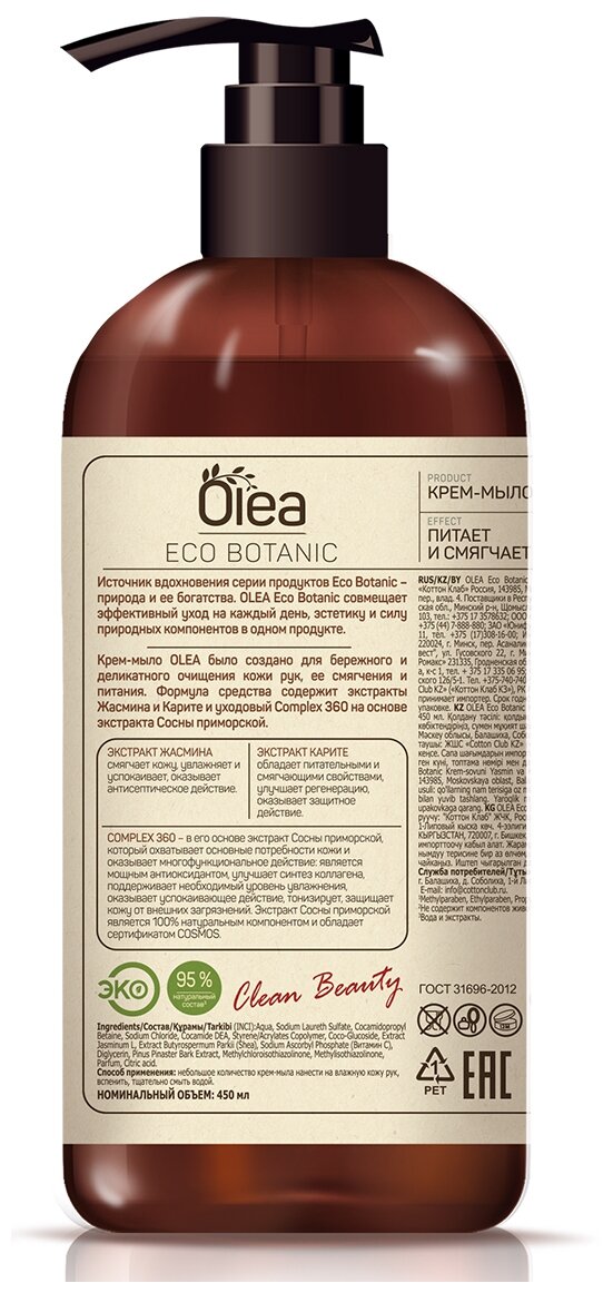 я самая_olea_eco botanic крем-мыло жасмин и карите c дозатор 450мл F06000 .
