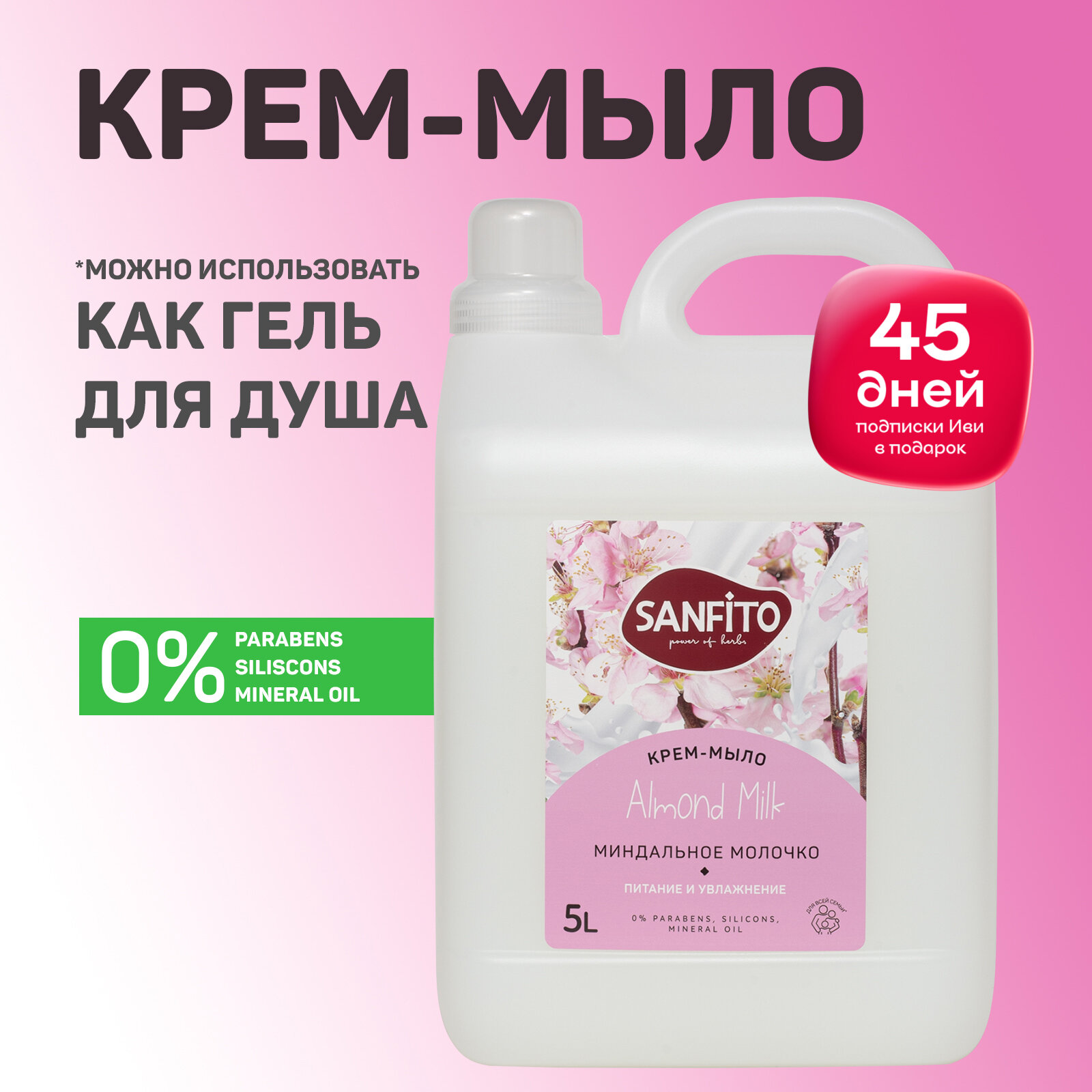 Купить SANFITO Крем-мыло для рук Миндальное молочко, Питание и увлажнение 5 л