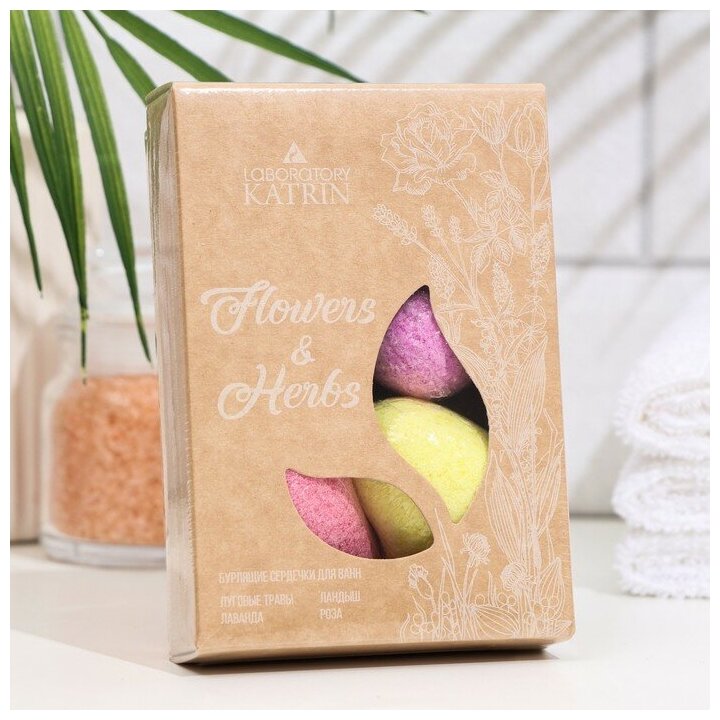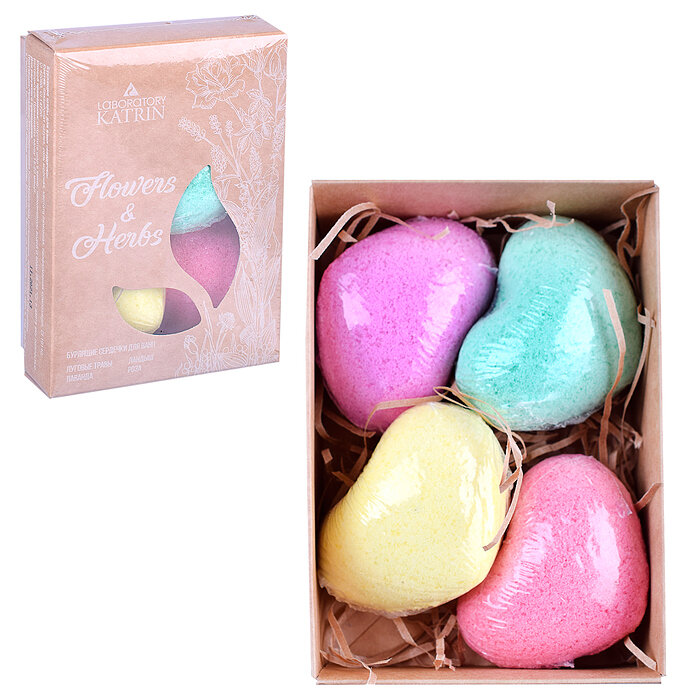 Купить Бомбочки для ванны, Набор бурлящих сердец Flowers & herbs 240 гр Лаборатория катрин Подарок учителю