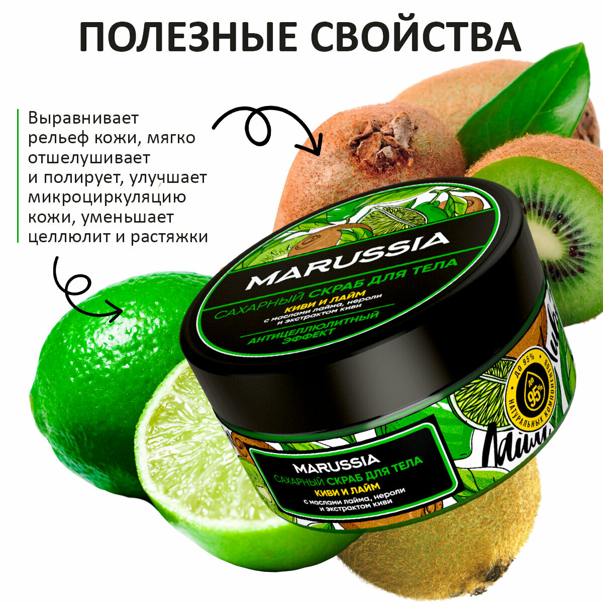 Marussia Сахарный скраб для тела антицеллюлитный с маслами Киви и Лайм, 250 мл интересное: