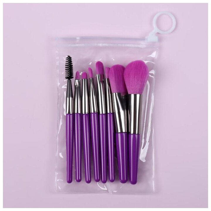 Набор кистей д/макияжа 8 предметов BRIGHT 12.5(±1)см нейлон/пластик фиолетовый PVC-зип QF 6975859