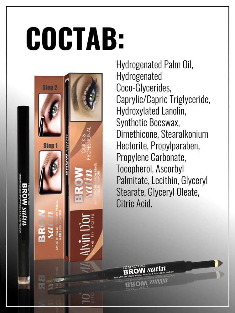 Alvin D'Or Дуэт для бровей карандаш+пудра Brow Satin, тон 01 Medium Brown