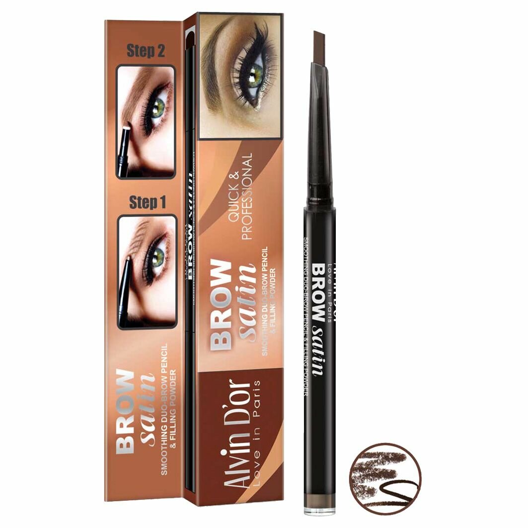 Alvin D'or Карандаш для бровей + пудра дуэт Brow Satin 01 medium brown