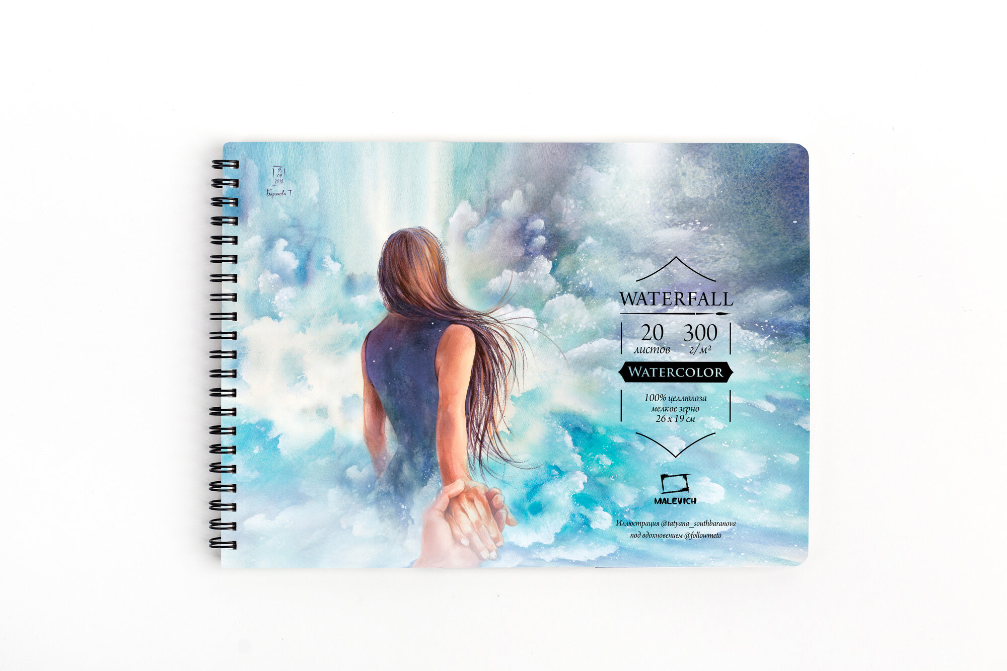 Скетчбук для акварели Малевичъ Waterfall 26 х 19 см, 300 г/м², 20 л. интересное: