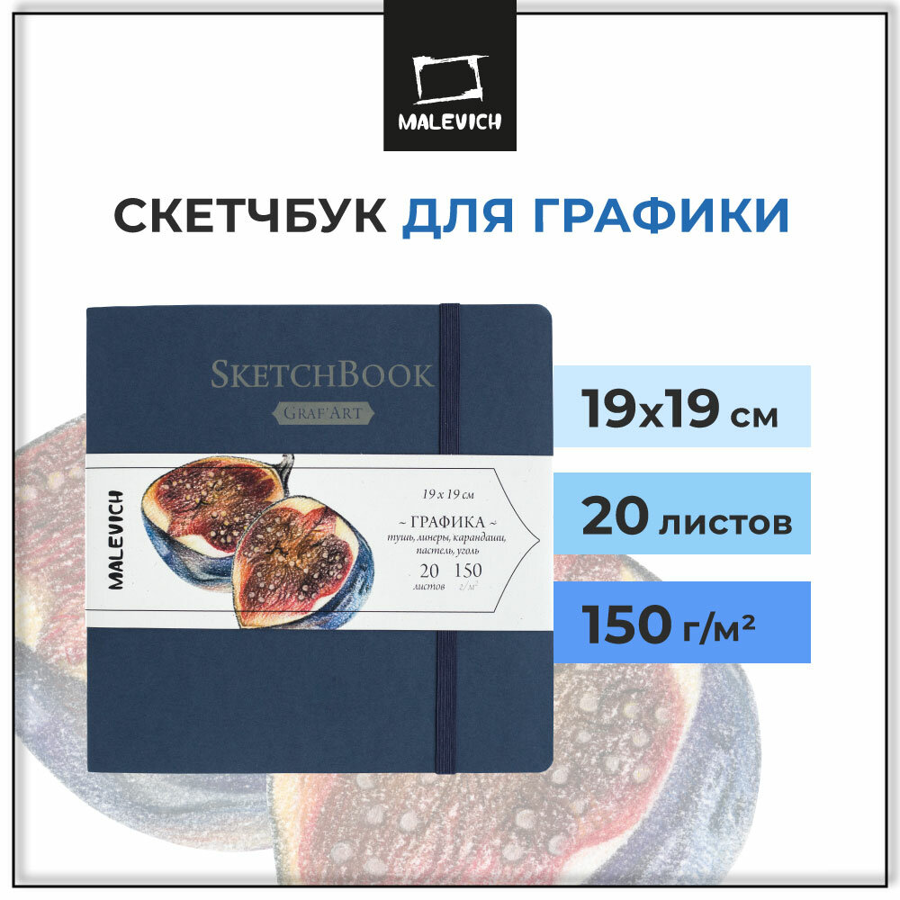 Малевичъ Скетчбук для графики "Graf'Art", синий, 150 г/м, 19х19, 20л, сшивка