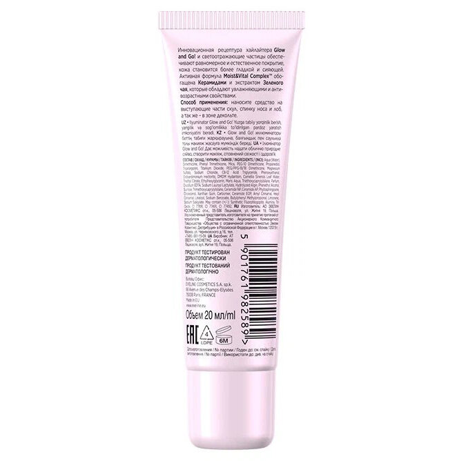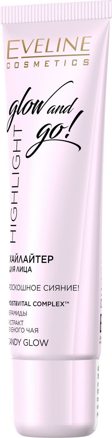 EVELINE Хайлайтер для лица GLOW AND GO роскошное сияние CANDY GLOW (перламутровый), 20 мл