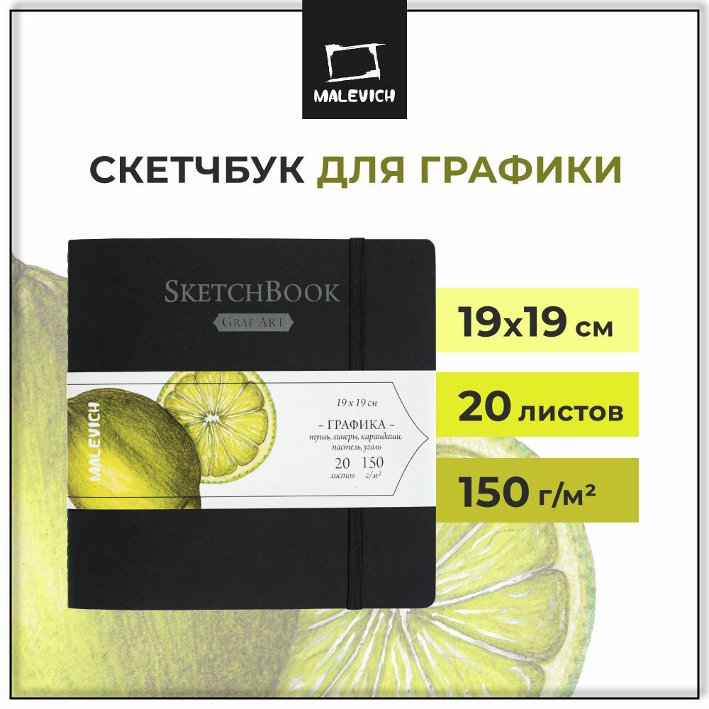СохранитьСкетчбук Малевичъ для графики "Graf'Art", черный, 150 г/м, 19х19, 20л интересное: