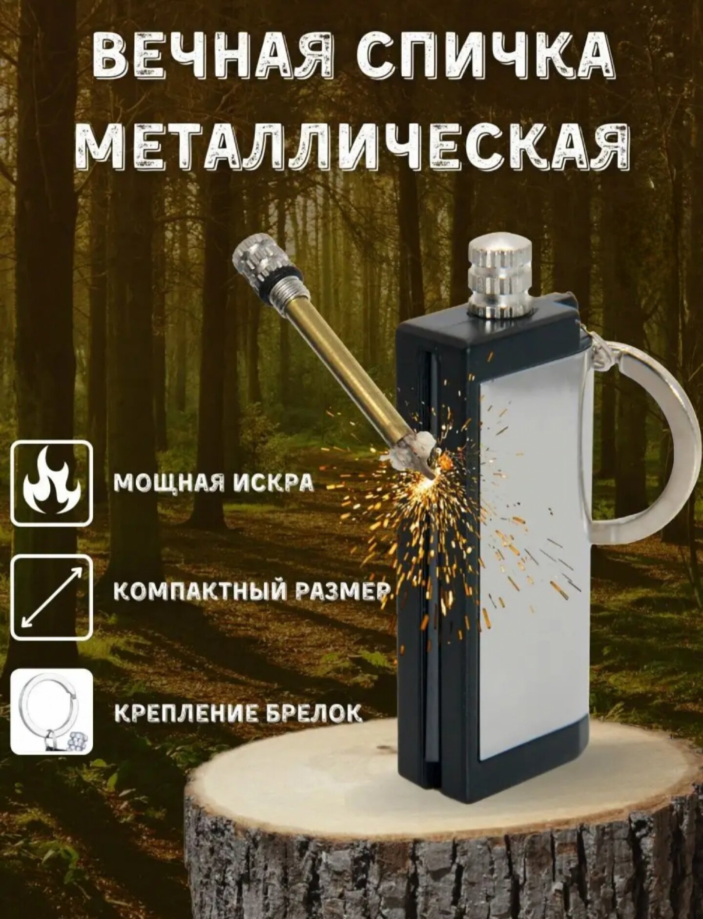 Нож складной черный походный туристический , для туризма и кемпинга , вечная спичка в подарок интересное: