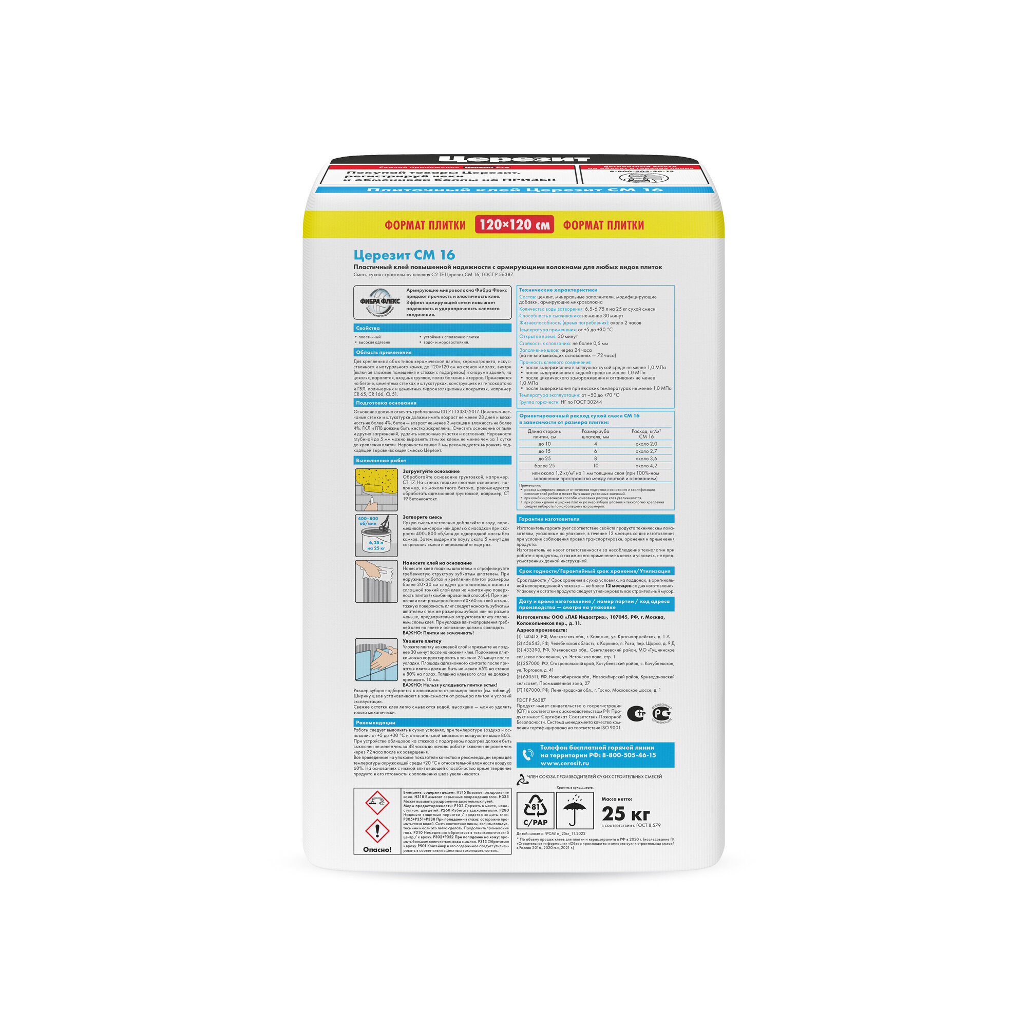 Клей для плитки эл. Ceresit CM 16/25 интересное: