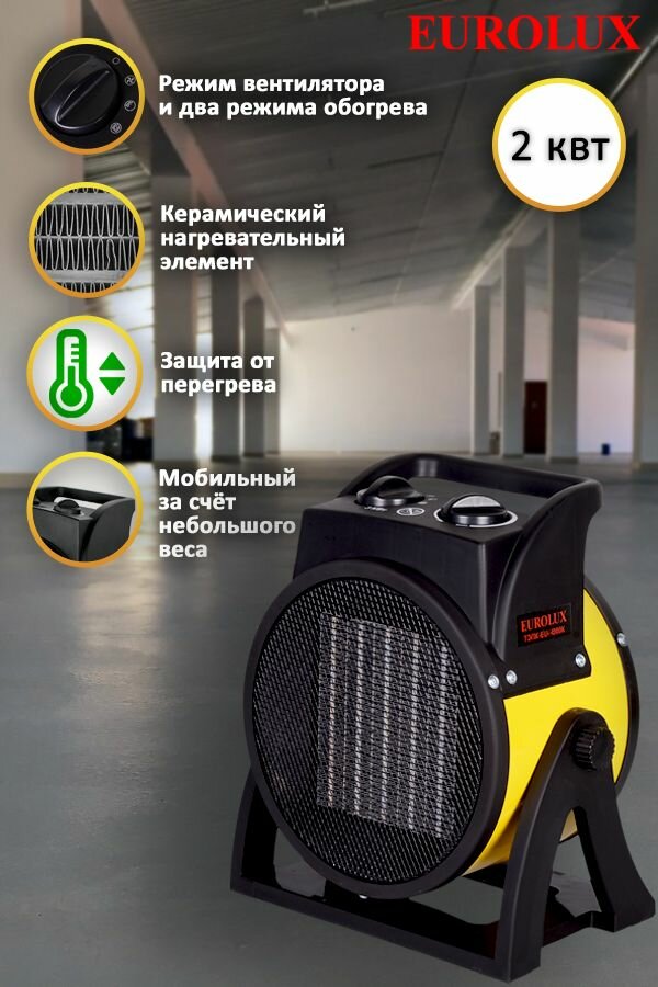Тепловая электрическая пушка ТЭПК-EU-2000K с керамическим нагревательным элементом круглая Eurolux EUROLUX ТЭПК-EU-2000K | цена за 1 шт интересное: