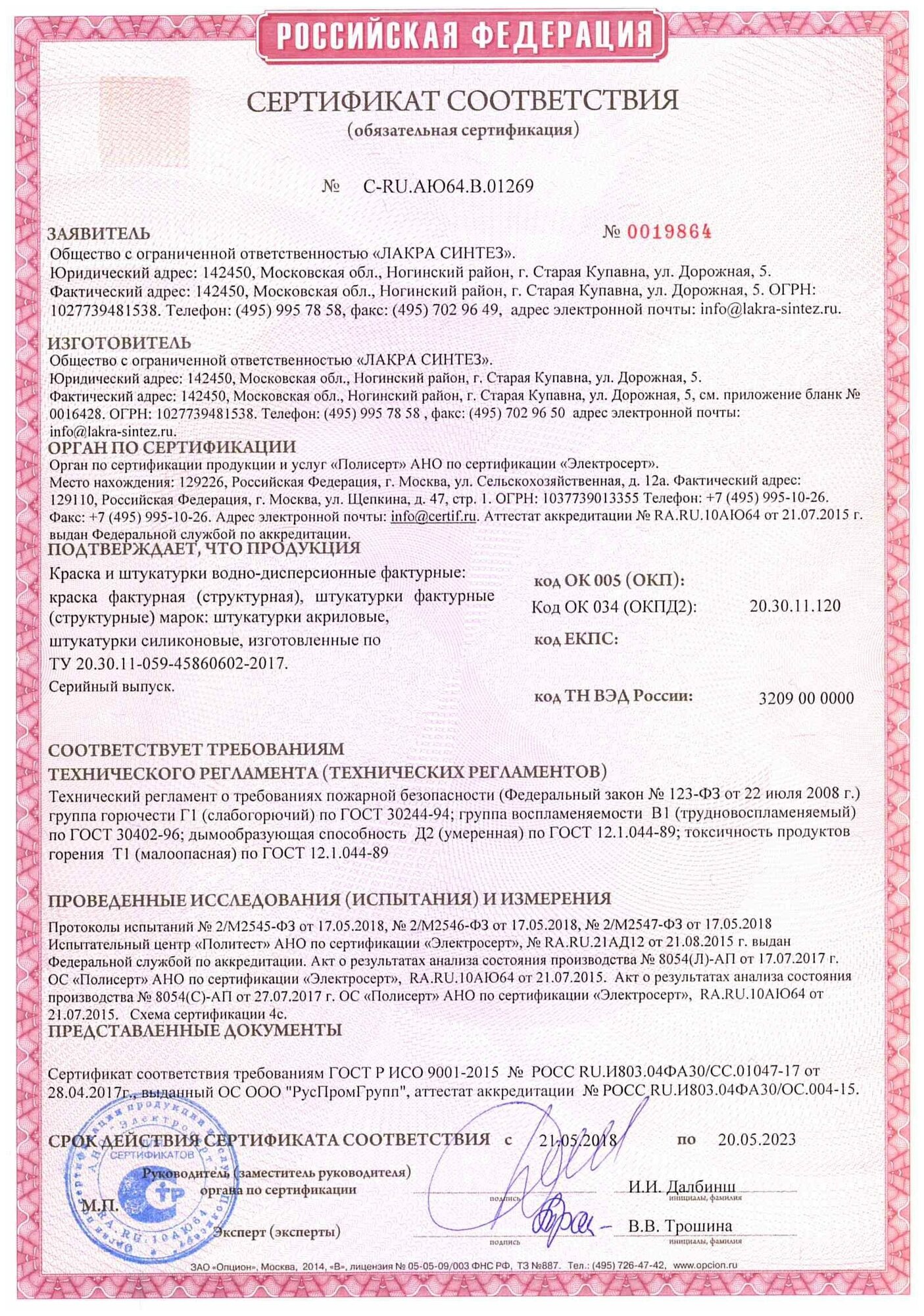 | Время высыхания | 24 ч |