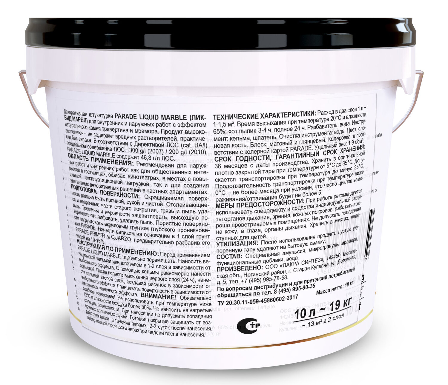 Штукатурка Декоративная Parade Milano Liquid Marble 10л Слоновая Кость, Матовая, Жидкий Мрамор / Парад Милано Ликвид Марбл.