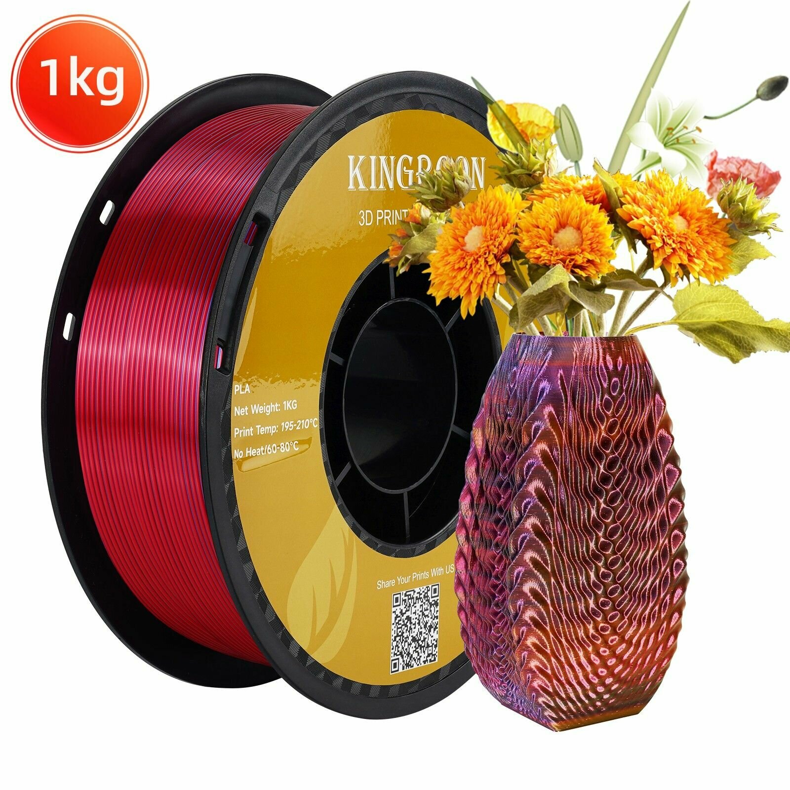 1kg Разноцветная Silk-PLA пластика красный-золотой-синий 1.75 мм 1кг. KINGROON интересное: