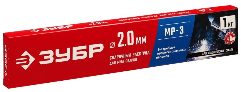 ЗУБР Д 2.0 х 300 мм, 1 кг в коробке, МР-3 рутиловый, электрод сварочный (40011-2.0)