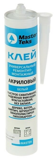 MasterTeks Клей MasterTeks Homemaster, акриловый, универсальный ремонтно-монтажный, белый, 400 г