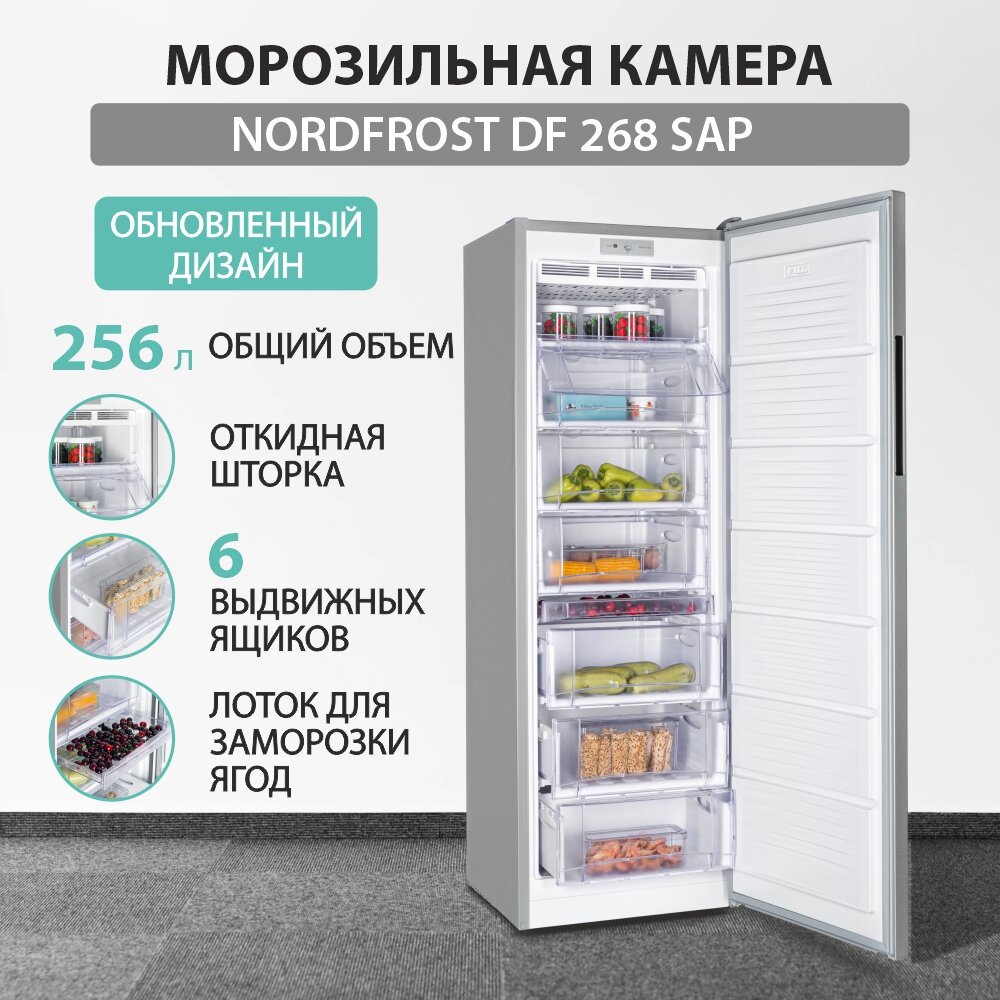 Морозильная камера NORDFROST DF 268 SAP, объем 256 л, серебристый