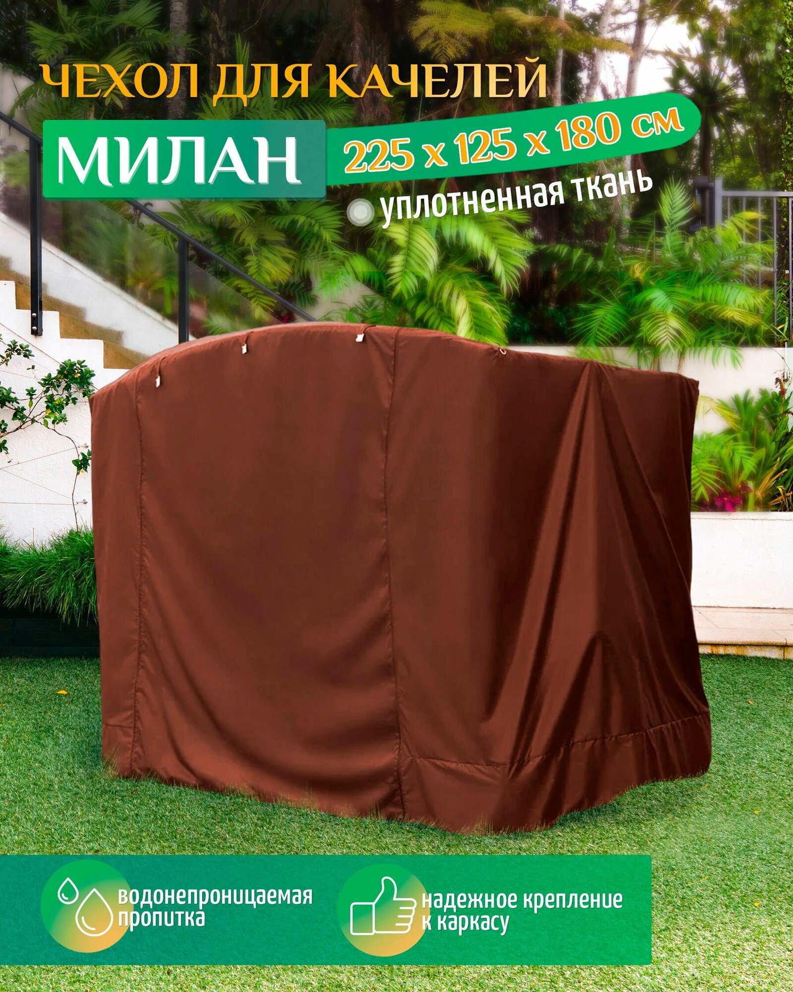 СохранитьЧехол для садовых качелей Милан (225х125х180 см) коричневый, чехол укрытие на качели садовые от дождя, накидка на уличную для дачи интересное: