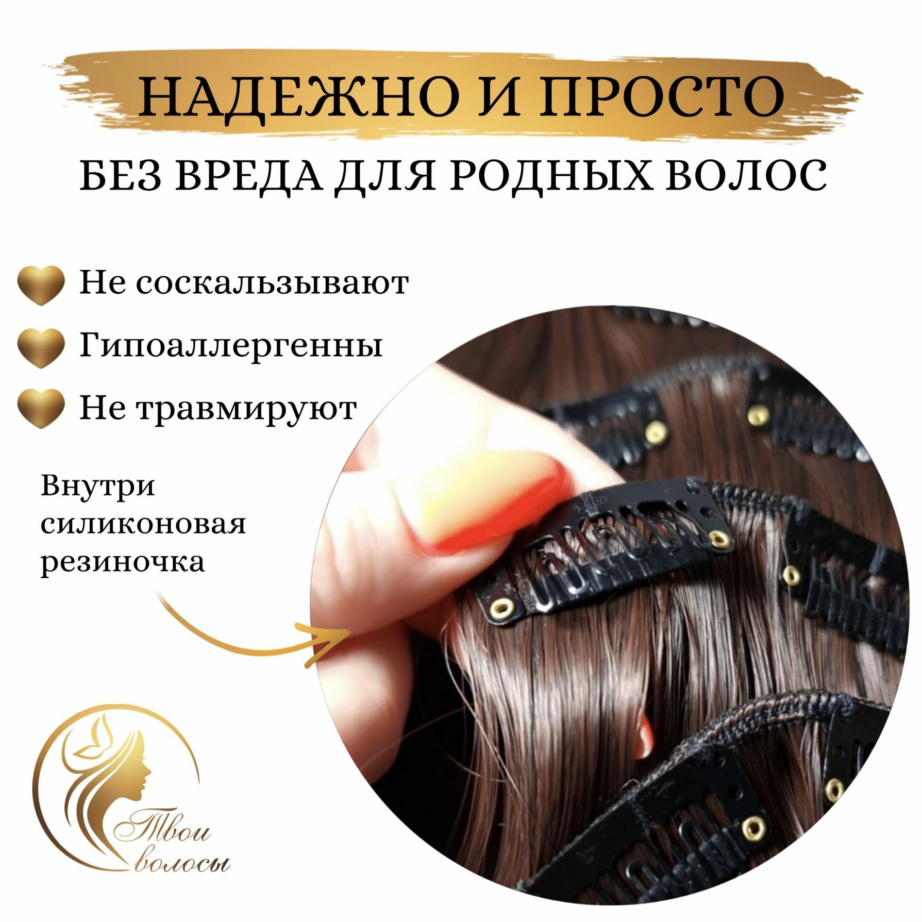 Накладные волосы, пряди на заколках-клипсах, 2/30 тёмно-русый
