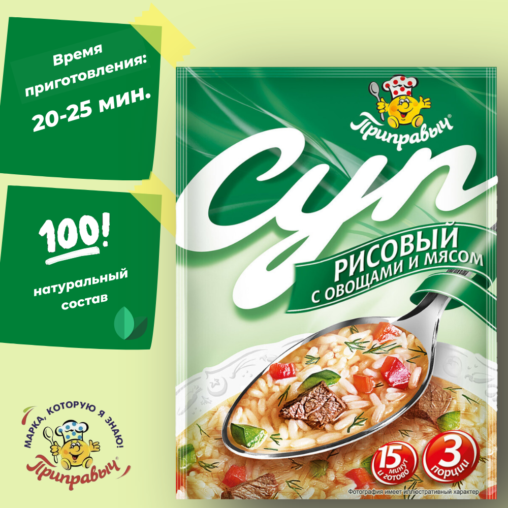 Суп быстрого приготовления Рисовый с мясом и овощами "Приправыч" 60 гр, 3 порции, 1 шт. интересное: