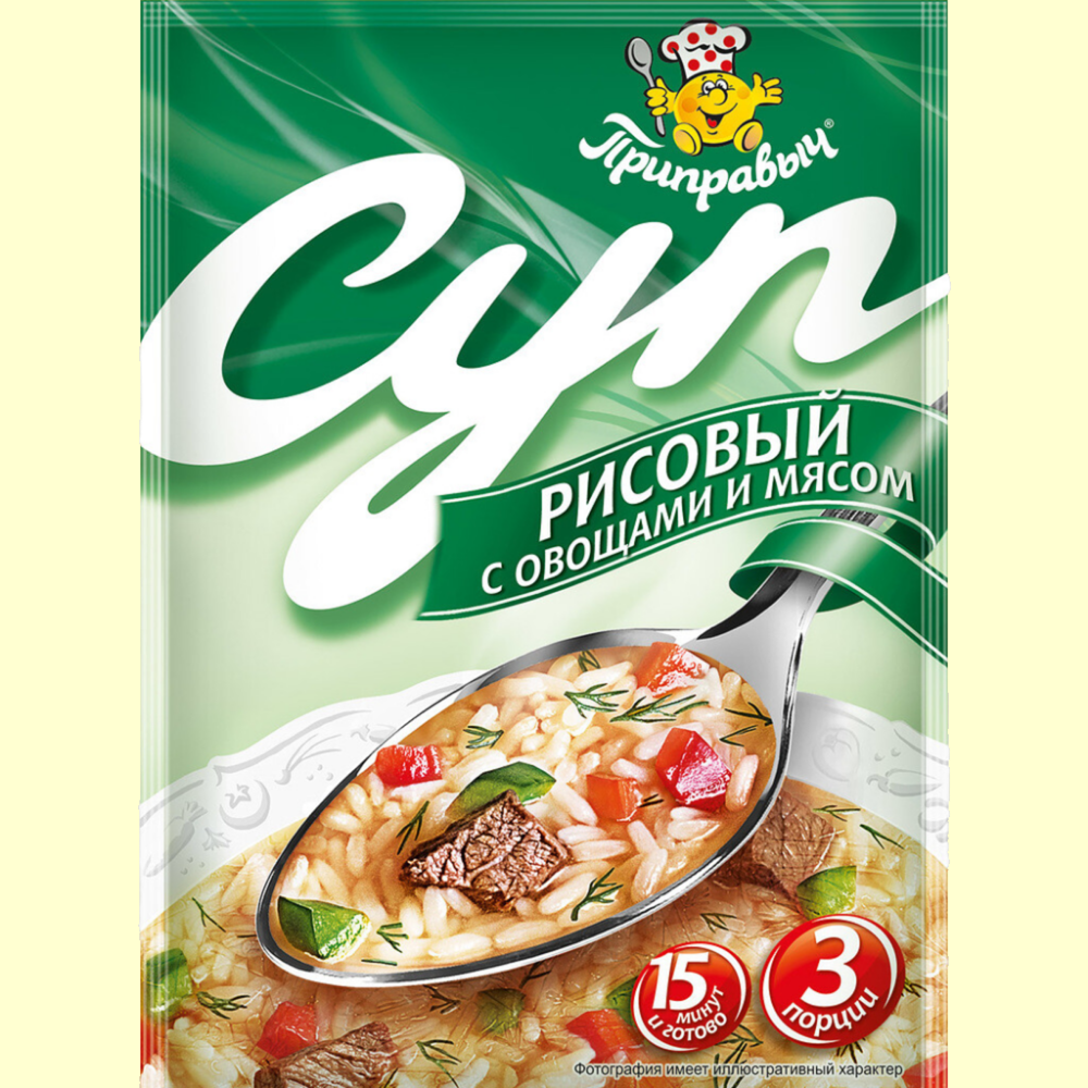 Купить Суп быстрого приготовления Рисовый с мясом и овощами "Приправыч" 60 гр, 3 порции, 1 шт.