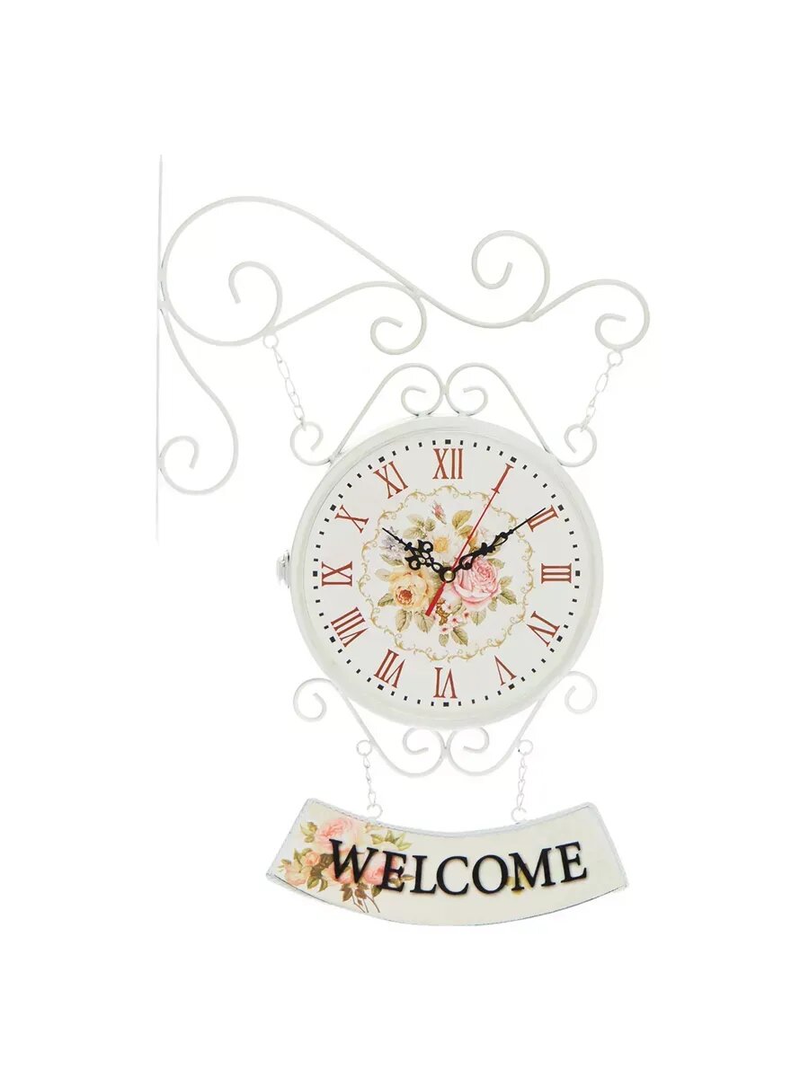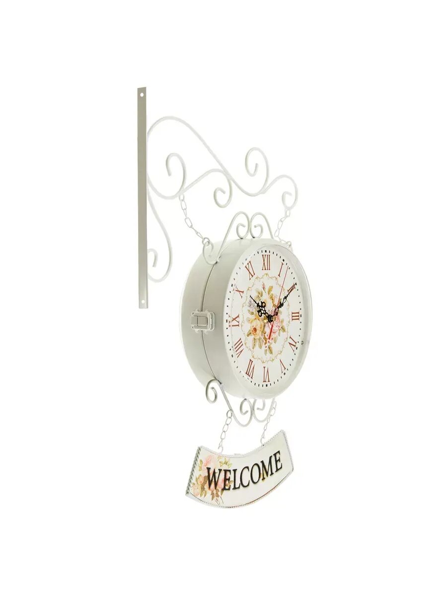 Часы настенные двойные, серия: Садовые, "WELCOME", белые, d=23 см, 47х31 см 2839878 .